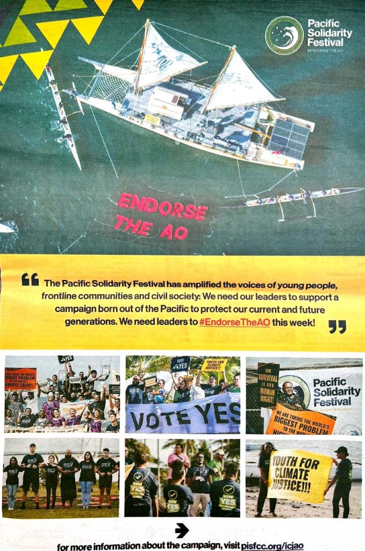 - Australian and NZ invitation for co-hosted COP with Pacific must be matched by support for ICJ advisory opinion bid