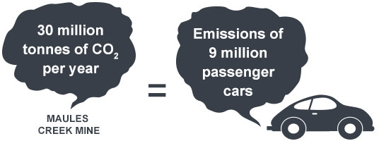 Whitehaven’s Maules Creek coal mine is the largest coal mine currently under construction in in Australia. When in full production, it will contribute over 30 million tons of CO2 per year, materially accelerating dangerous global warming.