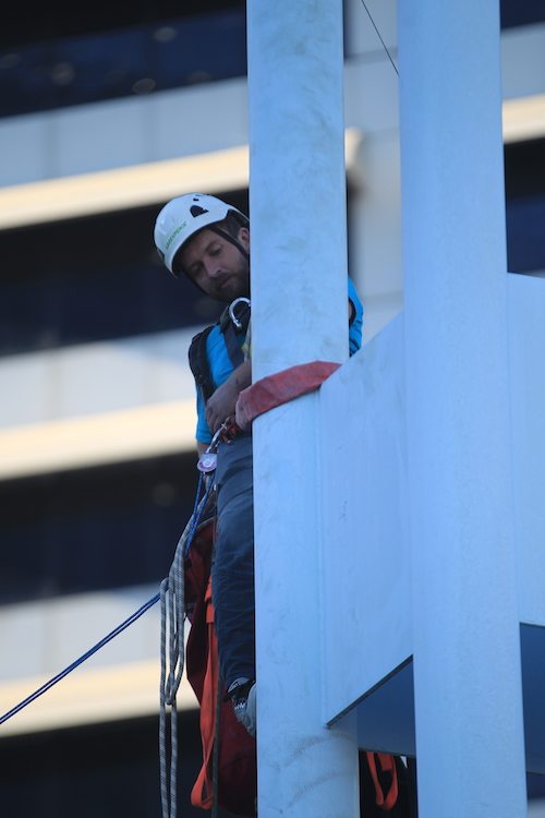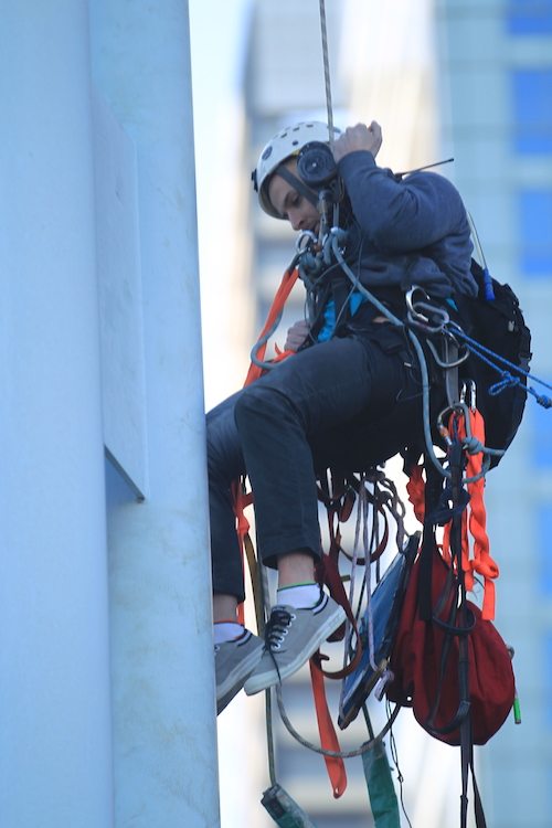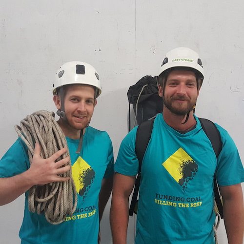 Together, Mick and Kai climbed 25 metres up and safely hung a huge banner with a message for CommBank’s CEO Ian Narev: stop funding dirty coal.
