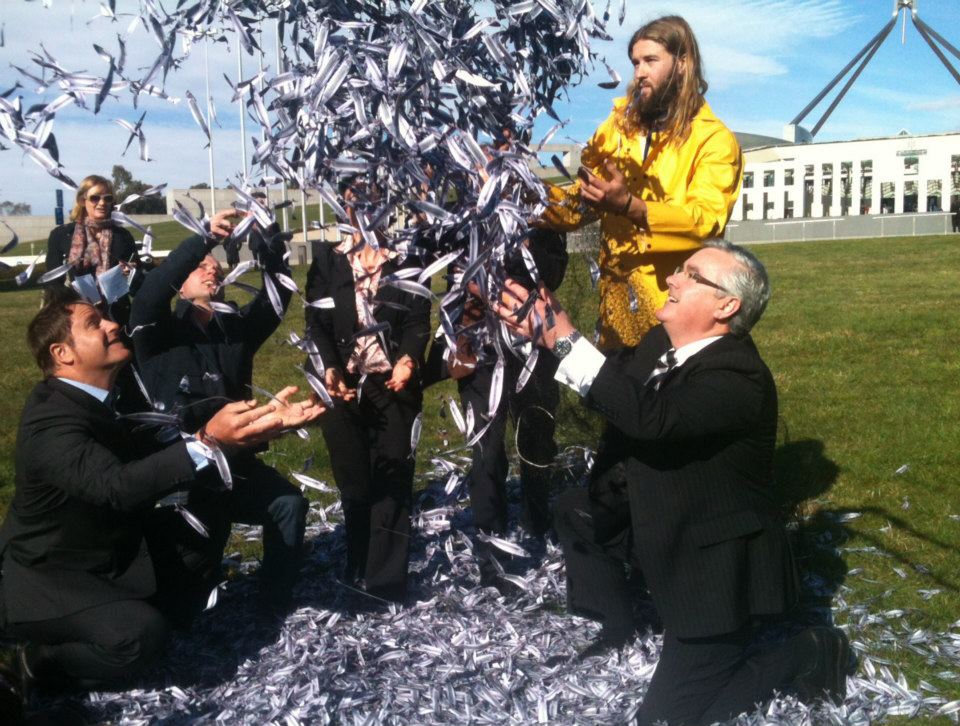 15 August 2012: The Stop the Super Trawler Alliance delivers 44,000 fish, each with the name of an Australian opposing the super trawler on it to Parliament House