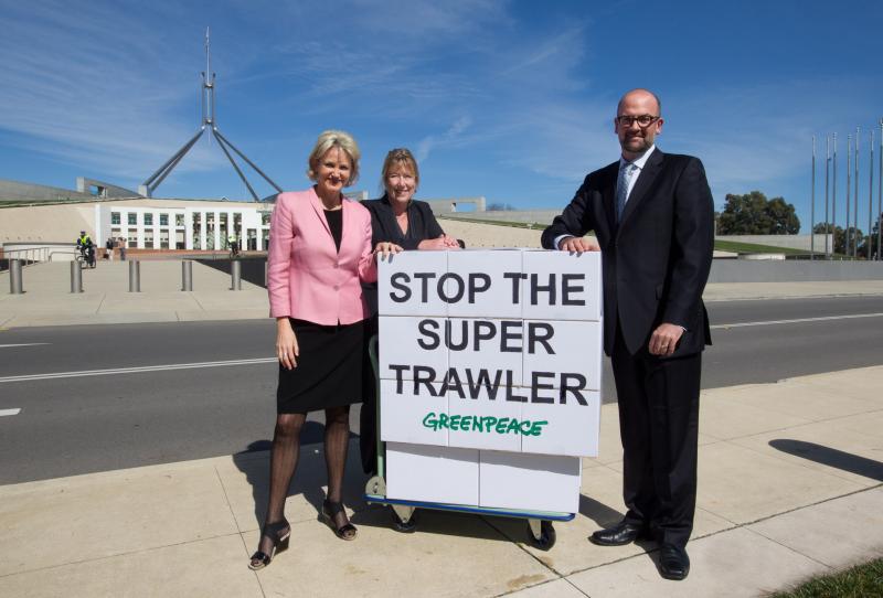 10 September 2012: Greenpeace hands over its petition to ban all super trawlers to Federal MP Melissa Parke. Over 55,000 signatures in 35 days – that’s more than one person signing up per minute! Melissa Parke announces she will do everything she can to ban super trawlers fishing Australian waters.