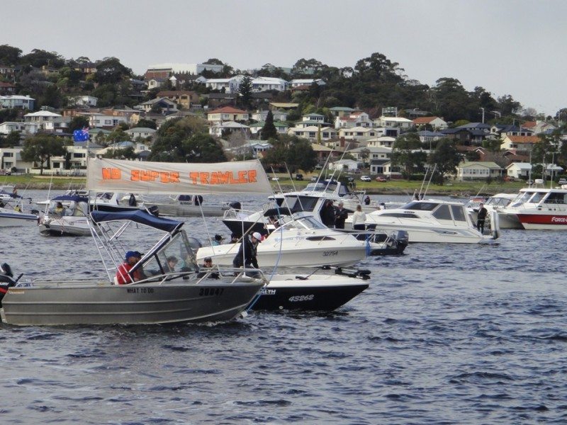 21 August 2012: Taswegian fishermen get angry. Hundreds of recreational fishermen take their boats on the road to protest the super trawler fishing Tasmanian waters.