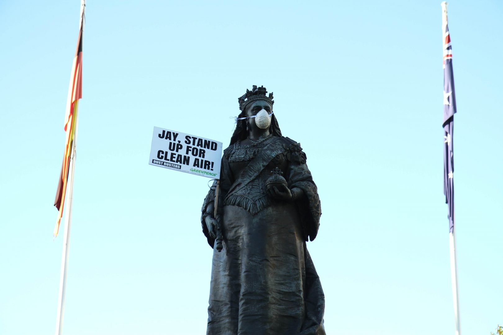 We went the whole hog with this action, dust-masking statues all around central Adelaide. These guys know that cleaning up after coal is a pig issue.