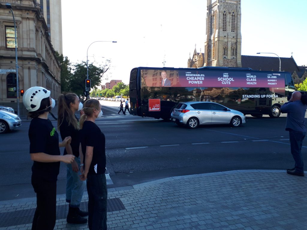 And maybe the best part… in the middle of all of this, Jay Weatherill’s campaign bus rolled past us – further confirming that there was no way he could miss this action!