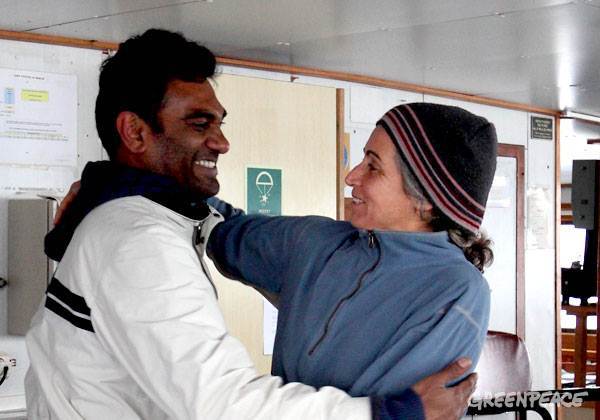 For the crew of Esperanza it was an honour and an inspiration to share this experience with Kumi. His willingness to partake in this action & the legal consequences that he faces assures us that we are part of something big here. This will be the issue that defines our times. If we can stop drilling for Arctic Oil then we have a chance to face up to climate change and the role we have to play in preserving our delicate planet.