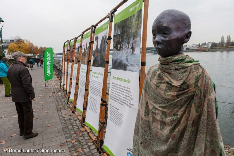 Das Greenpeace-Schiff Beluga II macht mit seiner Info-Tour fuer den Schutz des Klimas Station in Bonnr. Das Schiff besucht 11 Staedte entlang dem Rhein, Main und anderen Fluessen. Waehrend der 23. Weltklimakonferenz liegt das Schiff in der Naehe des Konferenzgebaeudes.