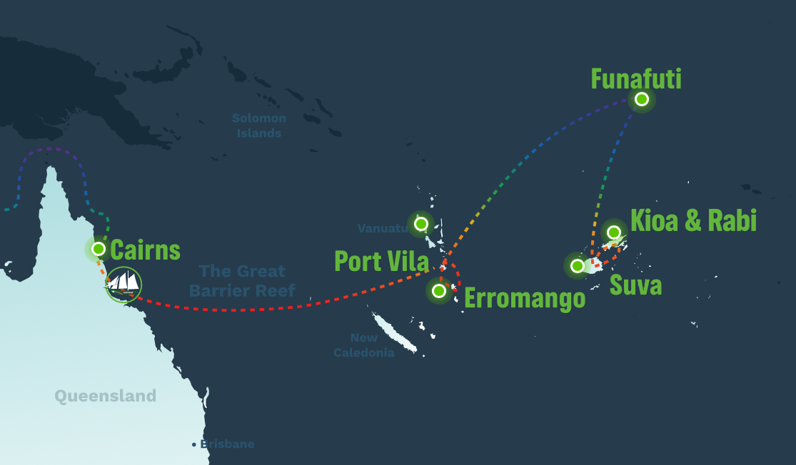 This journey is an opportunity to strengthen relationships and collaborate with communities, amplifying the visions of climate justice activists, and foster discussion, talanoa, action, and friendship.