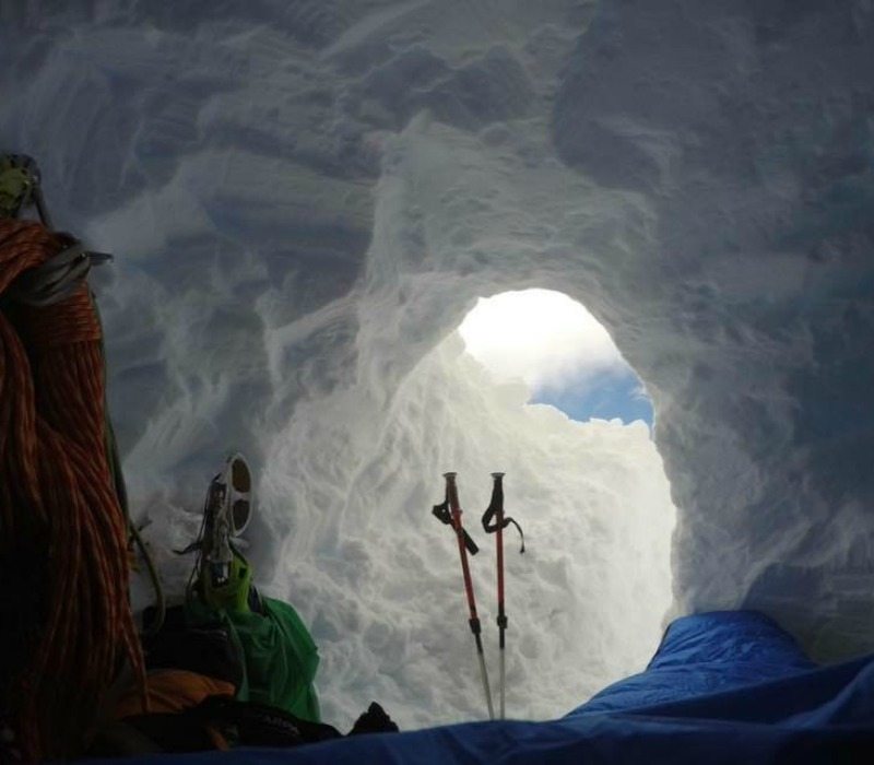 At Nipponino basecamp we prepared our gear and at midnight we started the approach to the foot of the west face of Cerro Torre (3.102 meters). A long and difficult hike on the Glaciar Grande among huge crevasses led us to Col standhart and 1.200 meters of climbing just to get to Circo De los Altares and the base of the route. After 15 hours of climbing we got the base of the wall and Col de La Speranza. Here we dug a snowcave that kept us warm and safe during the night. We melted our water and recovered from the day.