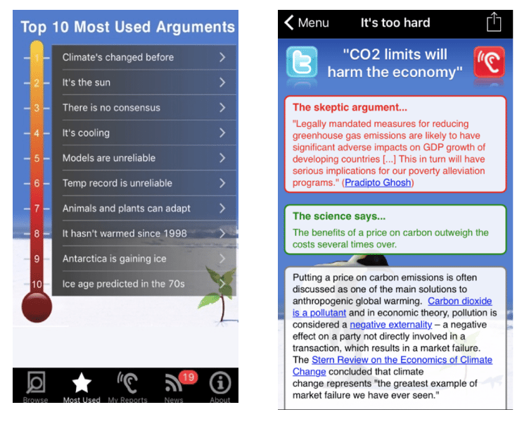 Ever get stuck in a discussion with a climate denier? Skeptical Science has your back! The app’s tagline is ‘getting skeptical about global warming skepticism’. And it delivers 100%. Choose from common categories such as ‘it’s not happening’, ‘it’s not us’ or it’s not bad’ to streamline your response to a specific argument like ‘it’s a natural cycle’. Once you’ve chosen the myth you want to bust, Skeptical Science gives you a detailed answer complete with links to scientific papers and summarised research.
