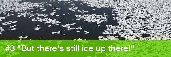 Now, the Antarctic. Yes, it is generally increasing but surprise, it is totally consistent with climate models which predict an increase in CO2 emissions will have a larger effect in the north. But the real question is: finally, does it balance Arctic ice loss? Unfortunately, it doesn’t. Sea ice in the Arctic is reaching dramatic low records.