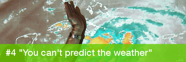 But if we can’t even predict the weather, how can we talk about climate? Actually, weather and climate are not the same thing. Climate is the weather average over a period of time and one of the attributes of an average is that it smooths the random and unpredictable behavior of weather. While not easy to predict climate, you can’t use meteorologist’s failures to put in doubt a climate model’s 100-year projection.