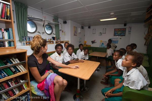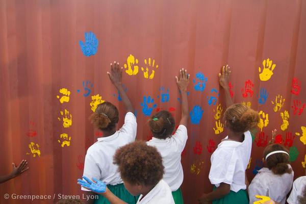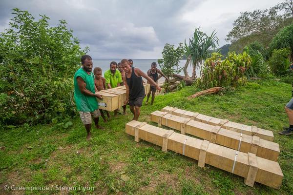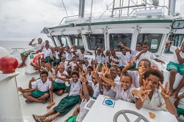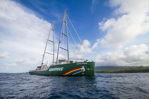 It’s been a big few weeks for the Rainbow Warrior in Vanuatu. Below are some beautiful images from where she is delivering supplies to the outer Islands effected by Cyclone Pam in March. A mixture of repairs, supply deliveries and village life captured by our photographer Steven Lyon.