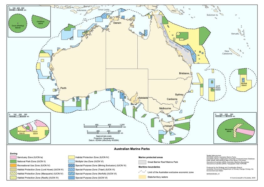 Map of Australia’s marine park network within commonwealth waters.