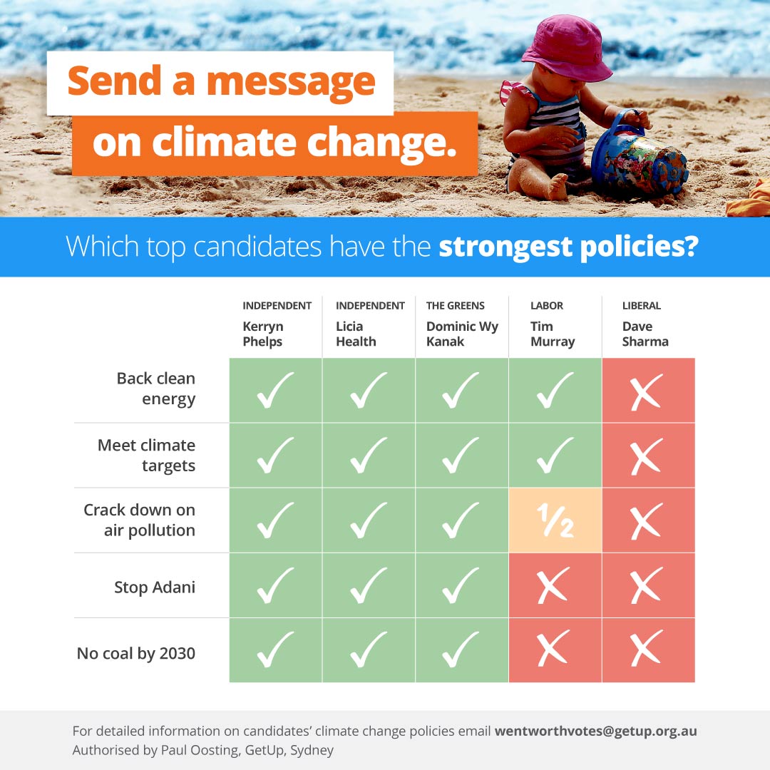 First Wentworth. Then Victoria, and the school climate strike. The swing against the climate wreckers is on – and the momentum is building across NSW. |||| All around Australia people are choosing more wind and solar. They rejected the Victorian Liberal Party’s plan to scrap the renewable energy target and are rejecting leaders and parties…