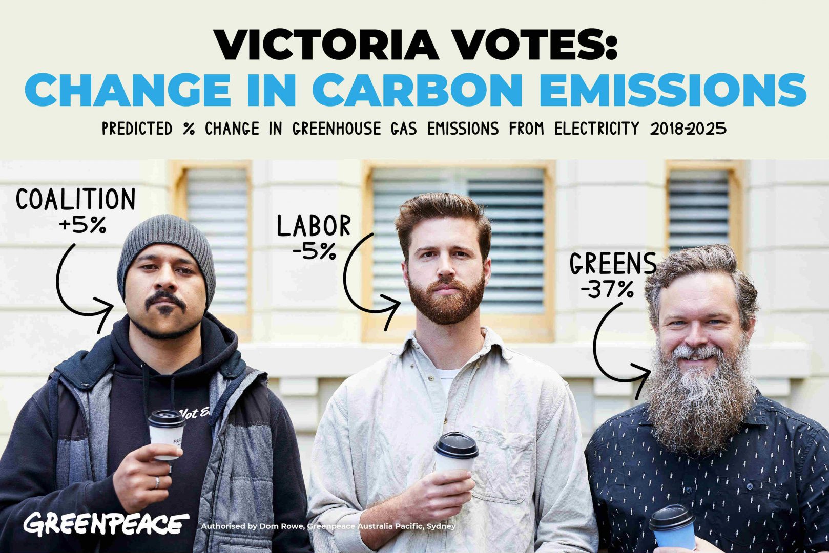 With the Victorian state election on a knife-edge, Greenpeace Australia Pacific has commissioned modelling on the impact the energy policies of the Victorian Labor party, Liberal/National Coalition, and Greens would have on electricity prices and carbon emissions to 2025.