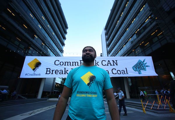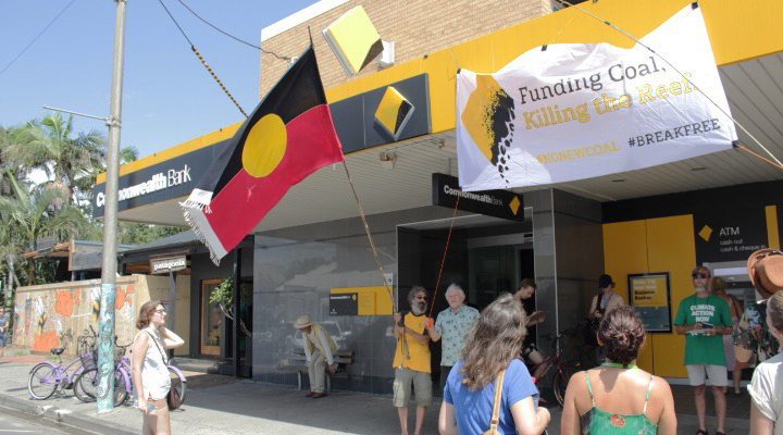 Today community activists dropped a huge banner outside CommBank, and it was awesome