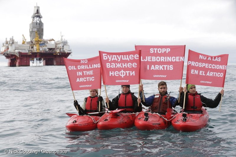 The message is clear: Norway, it’s time to choose people over oil. 35 activists from 25 countries around the world are in the Barents Sea to demand an end to Arctic drilling. |Four people in kayaks have reached Statoil’s rig, the Songa Enabler. They are bringing a huge globe with messages from people around the…