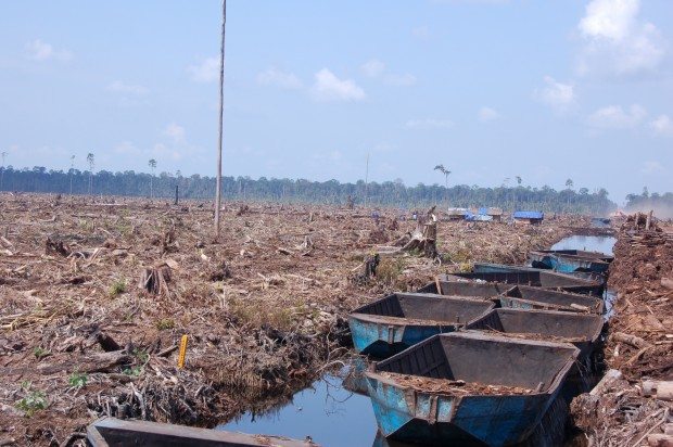Recent large-scale clearance of peatland forest inside a PT. Riau Andalan Pulp & Paper (PT RAPP) pulpwood concession on Pulau Pedang, Bengkalis Regency, Riau Province. PT RAPP is a subsidiary of APRIL, the pulp & paper division of the RGE Group. On 28 January 2014, APRIL announced that it intends to continue to use rainforest…