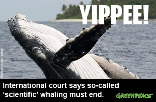 Whales everywhere will be jumping for joy today. Why? Japan's sham 'scientific whaling' programme has just been declared ILLEGAL in an international court! At 10am, the judges of the International Court of Justice handed down its long-anticipated decision on whether Japan’s government-subsidised whaling programme in the Southern Ocean should be allowed to continue.