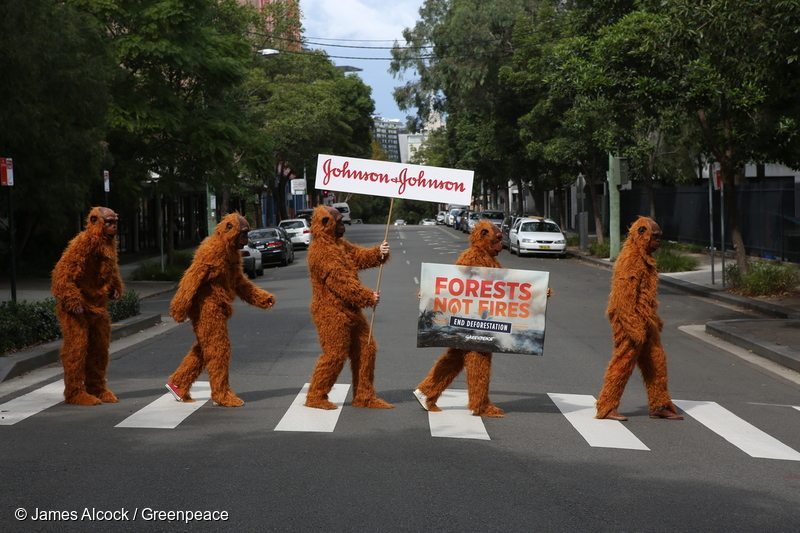 Greenpeace demands rainforest protection at the Australian headquarters of Colgate-Palmolive, Johnson & Johnson and PepsiCo
