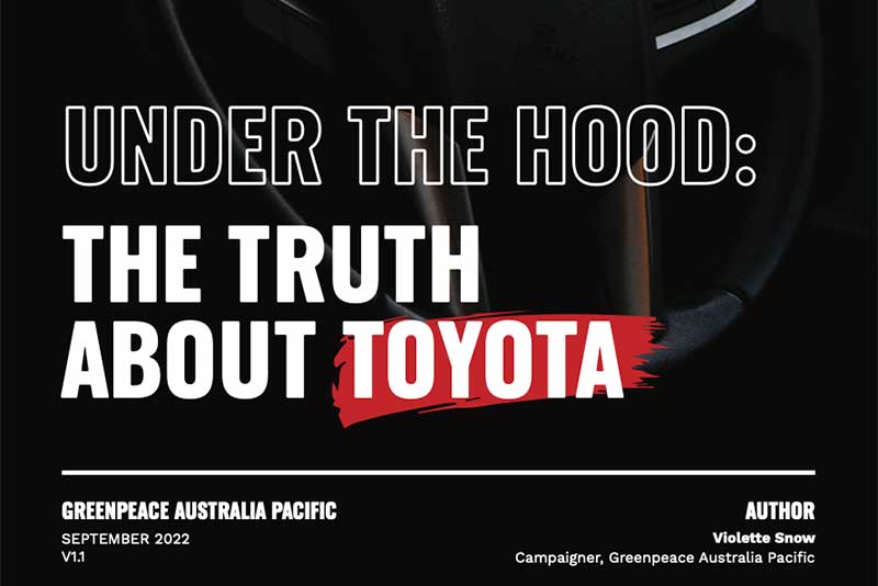 Toyota Australia reveals it won’t be beaten on its ambition to wreck the climate with polluting vehicles, with comments today showing it remains committed to scuttling vital emissions standards for new cars whatever the cost to Australians, Greenpeace Australia Pacific said today.